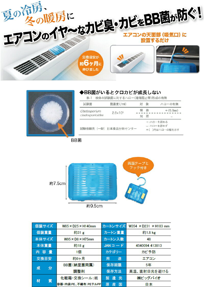 商品名 with BIO エアコン用カビ予防剤 内容量 1個 JANコード 4540094413813 発売元 株式会社ビッグバイオ 生産国 日本 商品区分 日用雑貨 広告文責 株式会社 中商 (TEL:092-885-8558)●ゆうパケット(郵便局のメール便)発送可能商品● ゆうパケット発送をご希望のお客様は、ご購入手続きの際、 配送方法を「メール便」に変更の上、ご注文をお願い致します。
