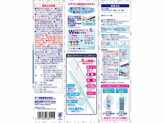 【検索用キーワード】アース アース製薬 あーす らくハピエアコンの防カビスキマワイパーセット1セット らくハピ エアコンの防カビ スキマワイパー セット 1セット エアコン カビ臭い カビ 除菌 クーラー 暖房 消臭 悪臭 防カビ 冷房 速乾 効果 使いやすい 人気 洗剤 掃除用洗剤 1セット 本体 ホンタイ 1セット ワイパーセット 洗剤 掃除用洗剤 RPUP_02拭くだけでカビの生育を防ぎます