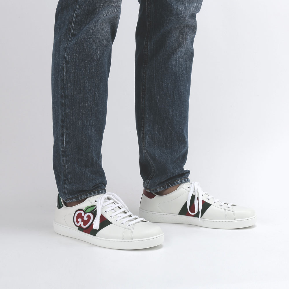 《1200円OFFクーポン対象_4日12時迄》グッチ GUCCI メンズ スニーカー Ace エース エンブロイダリー ビー スニーカー [26.0cm/26.5cm/27.0cm/27.5cm/28.0cm/28.5cm] ホワイト×グリーン×レッド 386750 A38F0 9073 | ブランド