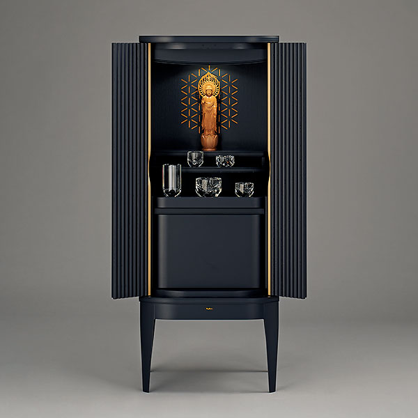 スタイリッシュデザインを追求しながら、部分的にクラシック調家具の要素を取り入れたデコラティブな仏壇です。