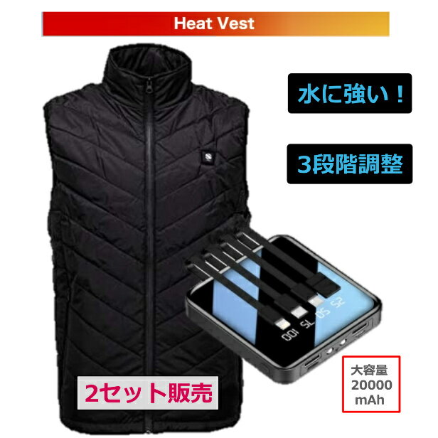 【2セット】【20000mAhバッテリー付】電熱べストバッテリー付きUSB XHV-03 電熱ウエア ヒートべスト バッテリ—付きヒーターベスト 男女兼用 作業着ヒーター防寒着 ヒーター付きベスト ヒーター内蔵 PSE取得 【ACアダプタープレゼント】【あす楽 関東〜関西対応】 詳しく見る