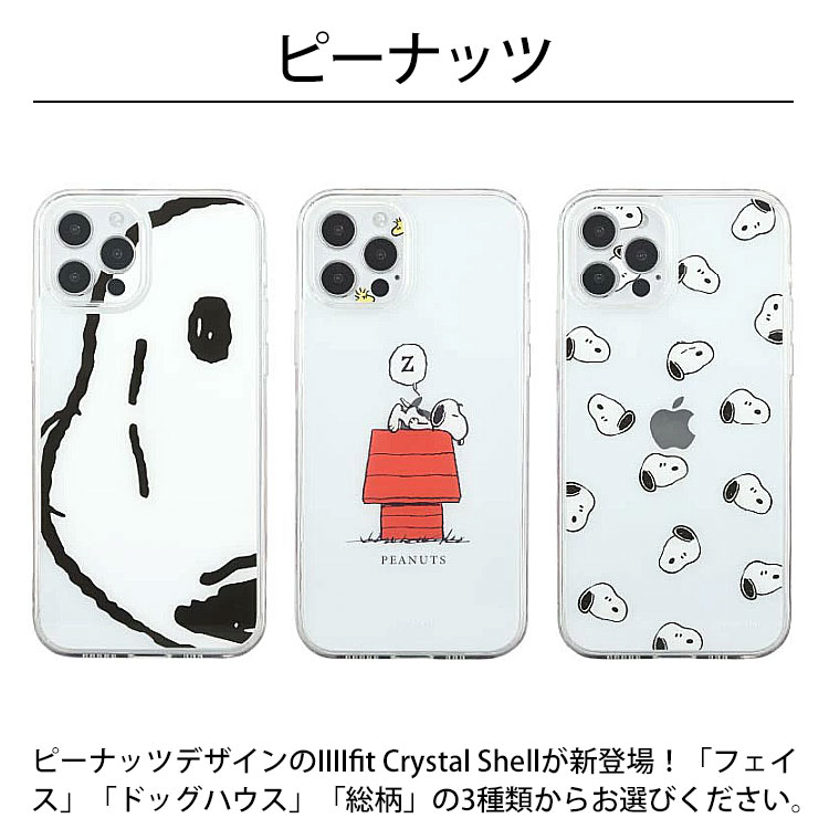 キャラクターが浮かび上がる カメラ部分まで9H強化ガラスで完全保護! ピーナッツ 「ピーナッツ」デザインのIIIIfit Crystal Shell iPhone12 Pro対応ケースが登場!「フェイス」「ドッグハウス」「総柄」の3種類からお選びください。