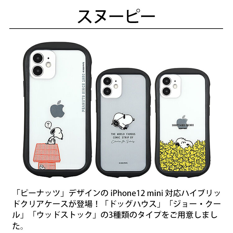 おすすめアイテム 輝くグリッター入り キラキラ輝くグリッター ハイブリッド構造 カードが収納できる PCとTPUのハイブリッド構造により、スマホを衝撃からしっかり守る スヌーピーデザイン 「ピーナッツ」デザインのiPhone12 mini対応ハイブリッドクリアケースが登場!「ドッグハウス」「ジョー・クール」「ウッドストック」の3種類からお選びください。