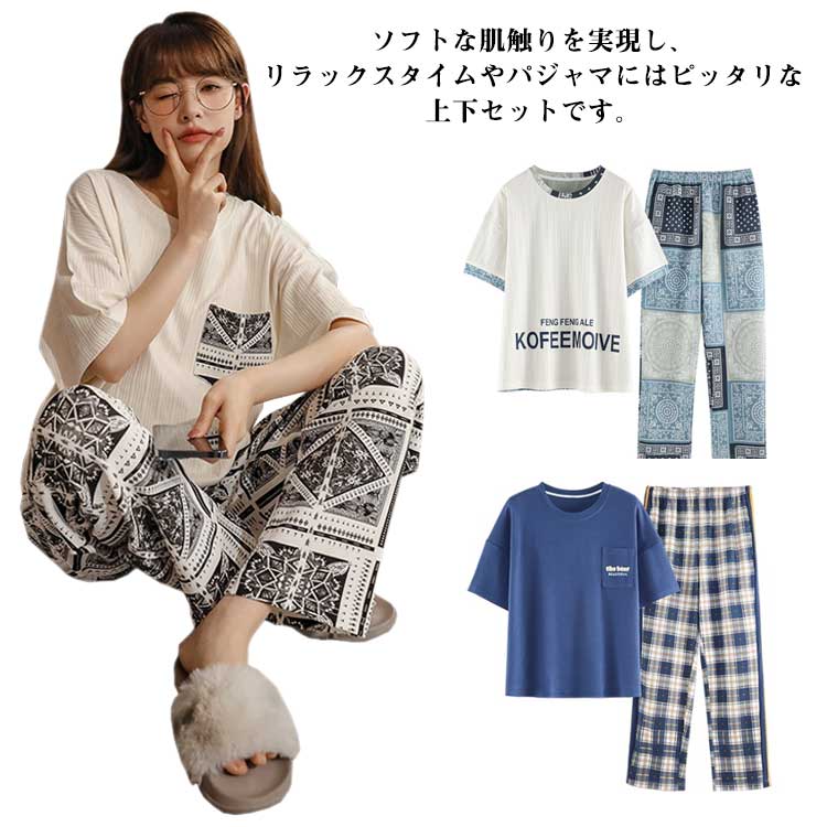 パジャマ レディース 夏 上下セット 半袖 長ズボン 綿 かわいい おしゃれ ルームウェア 部屋着 ロングパンツ ナイトウェア 寝間着 寝巻き 春 秋 コットン リラックス ワンマイルウェア 肌に優しい 通気性 送料無料