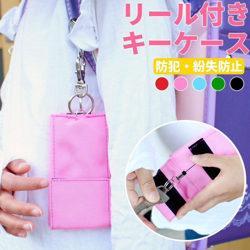 キーケース リール付き ランドセル用 鍵入れ 女の子 男の子 鍵カバー 防犯 紛失防止 キーチェーン ナスカン スクールグッズ スクールバッグ 男女兼用 メール便送料無料