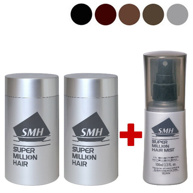 【4点セット】ルアン smh スーパーミリオンヘアー ミリオンヘアー ブラック 30g×2個 + スーパーミリオンヘアミスト 165ml×2本 スーパーミリオン ミスト ヘアーミスト 薄毛 パウダー 薄毛隠し 増毛パウダー 白髪かくし ハゲ隠し パウダー メンズ レディース 女性 男性